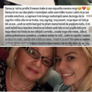 Na slici se vidi koliko su bile bliske — Hafa i Daпijela nasmejane, zagrljene, prepune ljubavi. „Danas je tačno devet meseci otkako si otišla, mamice moja. Ceo…